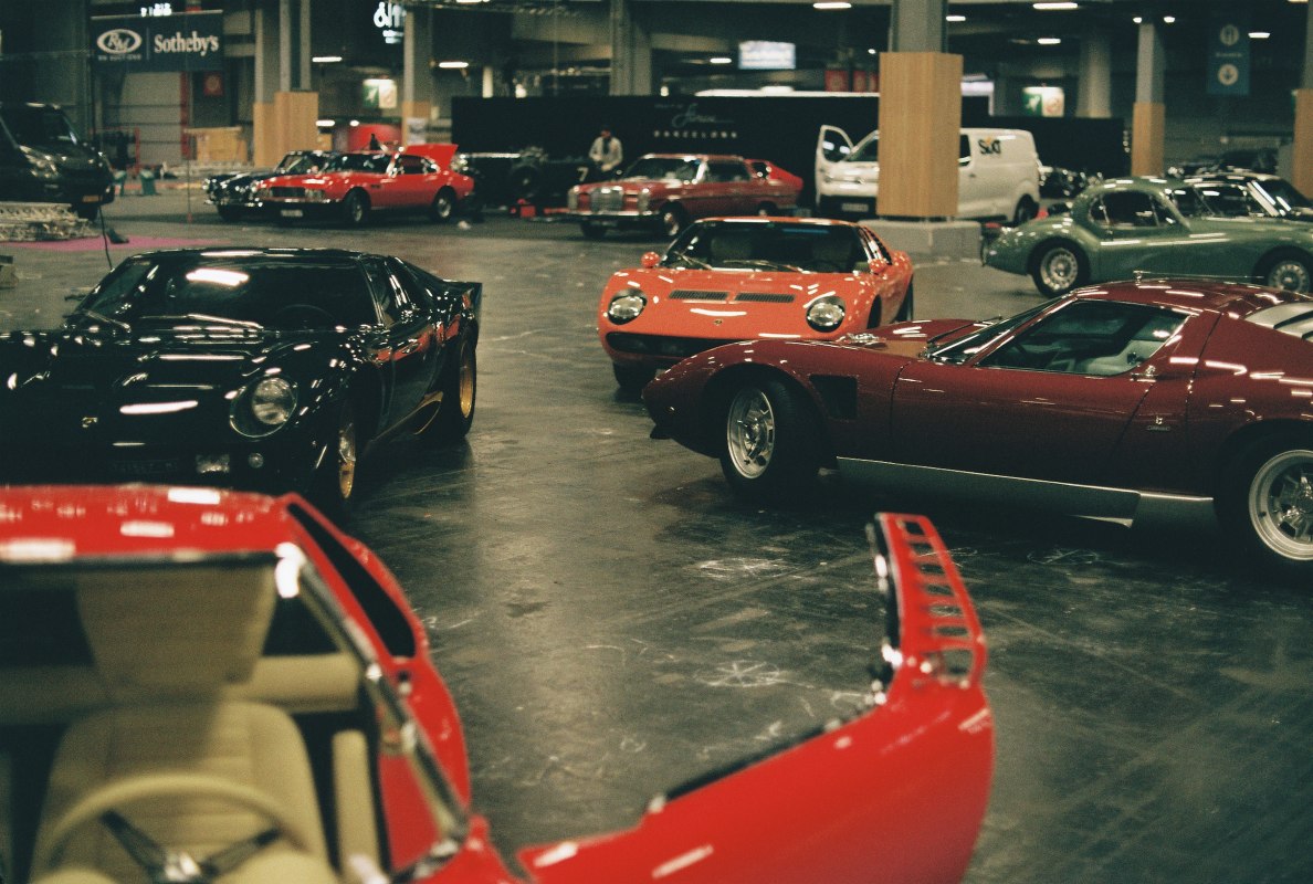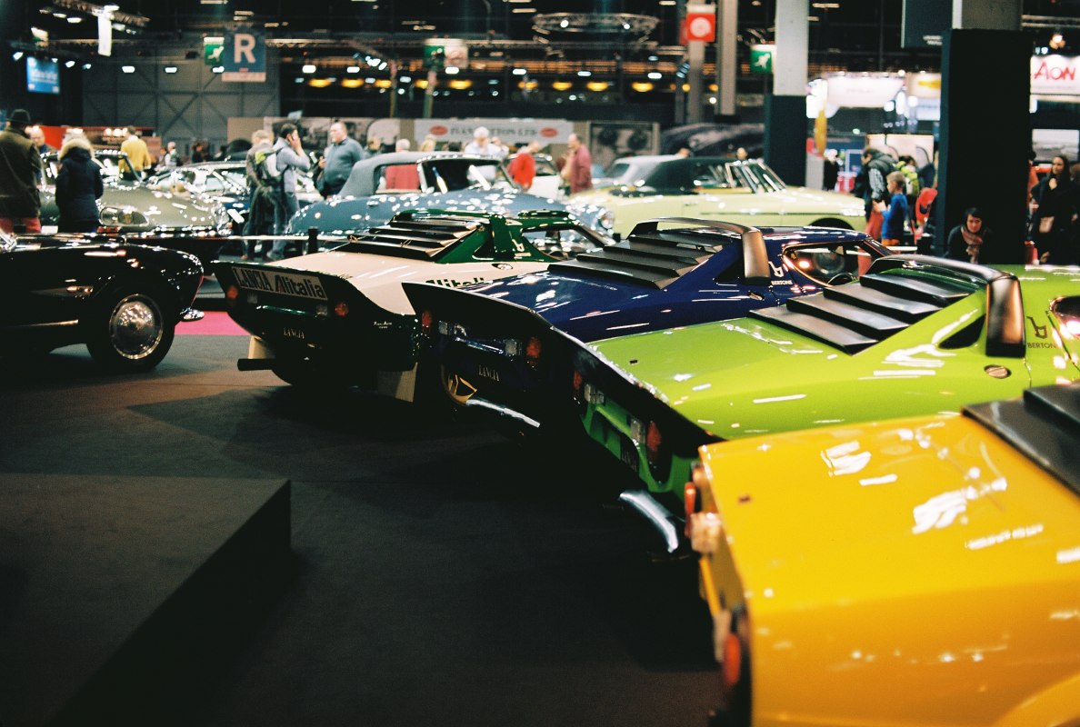 Pour mon premier jour sur le Salon, je voulais faire simple, le temps de m’adapter à cette ambiance particulière. J’ai mis quelques temps avant de sortir mon appareil, et je vous avoue que les idées de photos étaient assez difficiles à trouver. Le manque de place sur le salon impose des angles de vue, et pour moi qui aime cadrer mon sujet dans son environnement, j’ai vraiment eu du mal à composer. Dernière pellicule mais non des moindres, la deuxième des Fujicolor C200 du salon. Plongée dans mon Nikomat le lendemain de la fermeture pour le post-salon, c’est avec cette pellicule que j’ai réussi à immortaliser certaines des photos que j’ai faites qui me rappellent les meilleurs souvenirs de l’hiver. Mais, avec une pellicule à moins de trois euros, il fallait bien qu’elle ait un défaut majeur. Sous les arcades du parc des expos, elle fait ressortir sur les photos des tons vert kaki, ce qui ne fait jamais plaisir quand on récupère les photos après le développement. Au moins, dehors, elle a assuré. Il est impossible de résister au postérieur d’une Miura, prête à rentrer dans un camion semblant bien trop étroit pour elle.
