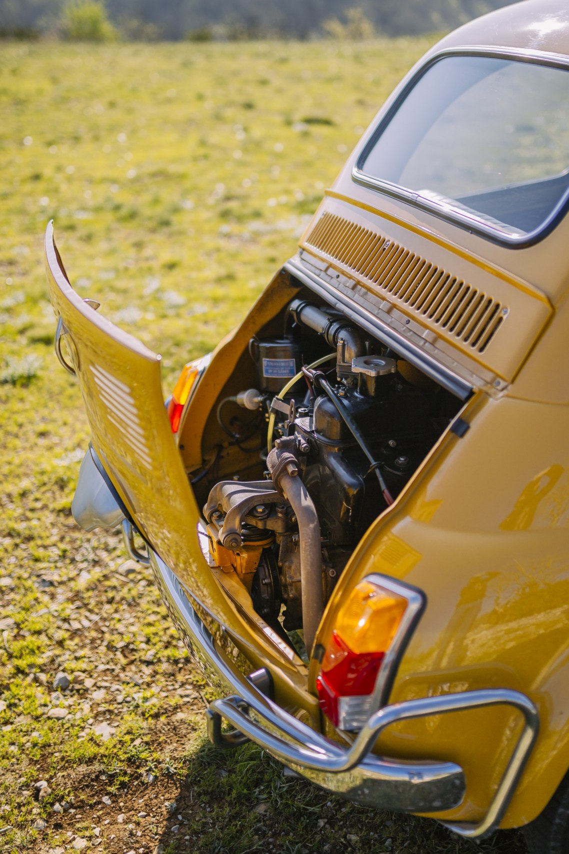 Cette Fiat c’est à peine plus d’une demi-tonne d’amour, et un demi-litre de bonne humeur. A la conduite, on ne va pas se mentir, on ne retrouve pas le confort d’une allemande, c’est flou dans les trajectoires, une puissance proche du néant, l’étagement de la boîte a sûrement dû être calculé avec les pieds, mais le plaisir est pourtant là. Un sourire incontrôlable m’envahit à chaque fois que je la sors du garage. Déjà, rouler en ancienne, c’est plutôt cool. Mais cette Fiat 500 c’est plus que ça. C’est d’abord une petite bouille ronde qui donne le sourire à tous les passants qui la remarquent.